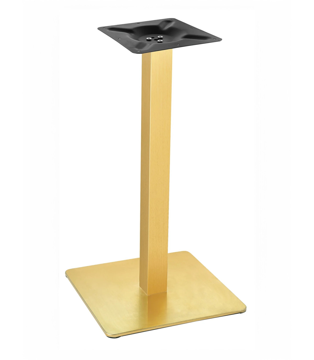 Base  Cheste Oro Mate. Pie central de mesa para hostelería con base cuadrada 45 x 45 y soporte de 240x240 . Con reguladores anticojera. Tubo de 8 cm  x 8 cm .Altura 72 cm Peso : 13,1 KG Fabricada en acero inox, color oro mate