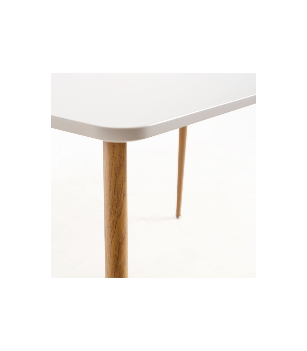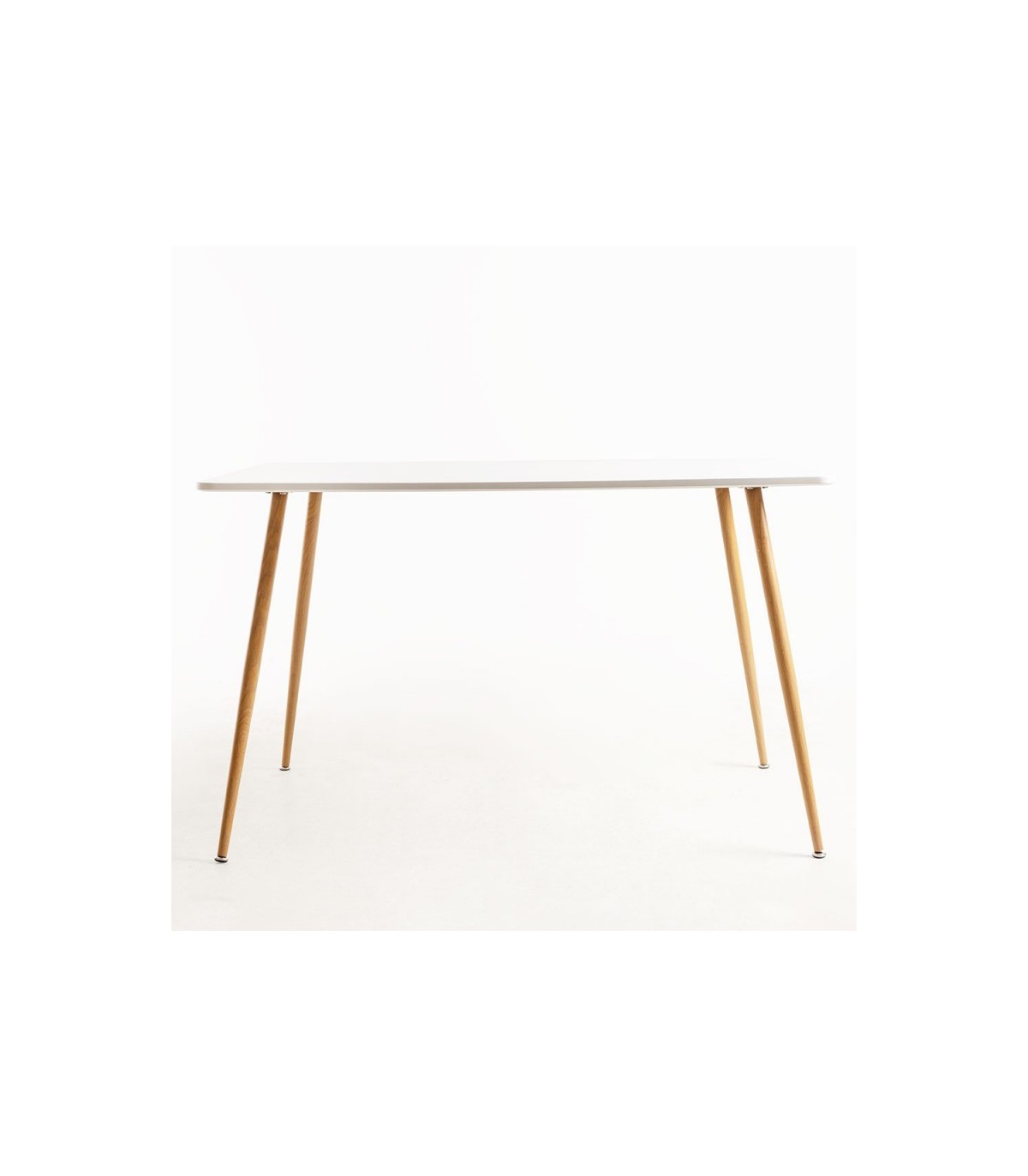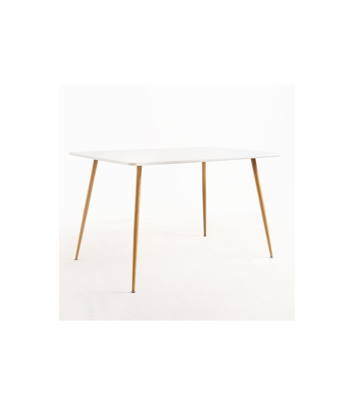 Mesa Nordica Visten para interior, patas metálicas imitación madera y tapa de madera barnizada color oscuro o blanco. Medida 120x80 cm