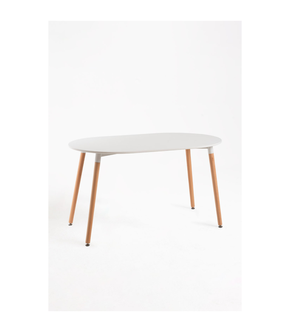La calida y acogedora Mesa Nórdic Ovalada 130 cm x 80 cm es el elemento perfecto que cualquier ambiente de tu hogar o restaurante necesita. Mesa Nórdic Ovalada 130 cm x 80 cm está compuesta por tablero de 130 cm x 80 cm fabricado en madera con acabado en lacado mate blanco resistente a los golpes, junto con 4 patas de madera de haya maciza garantizan estabilidad. Mesa Nórdic Ovalada. Las mesas ovaladas permiten una comunicación fluida de todos los comensales, ya que cada uno es el centro de la mesa. Es decir, se evitan esquinas rectas o extremos, y se facilita la conversación y facilidad de acceso a los platos centrales. Al no tener esquinas, evitan golpes y un tránsito fluido alrededor de ellas.