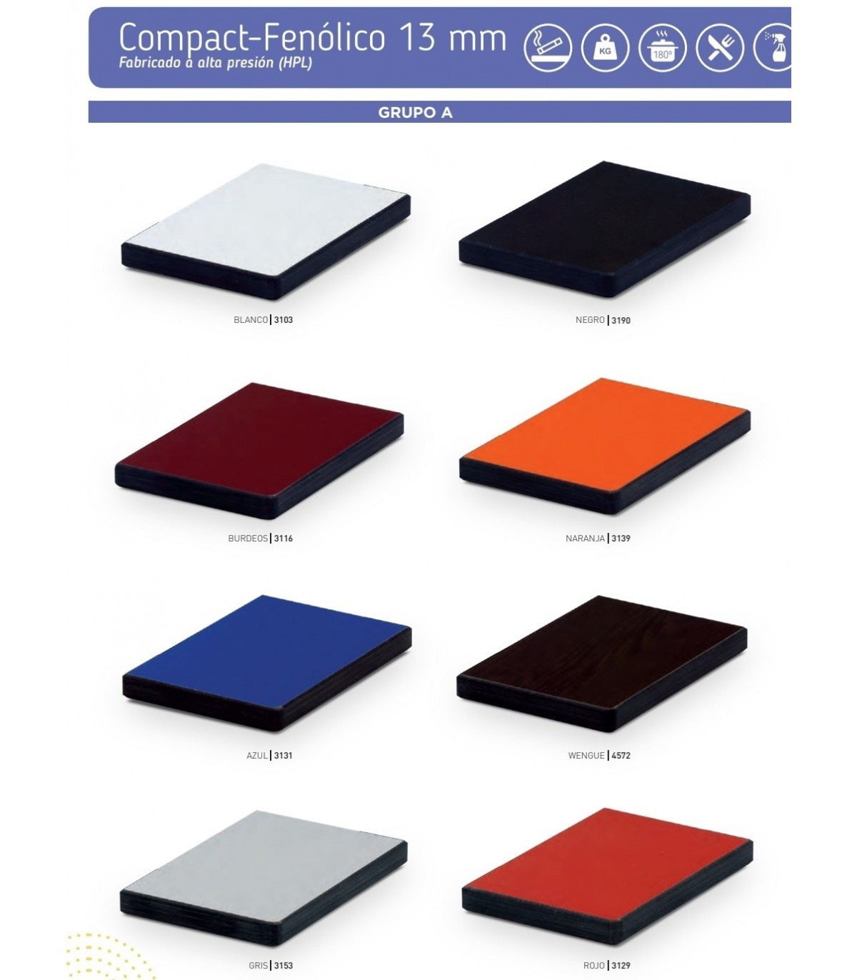 Mesa Acapulco tablero compacto . Mesa de bar con estructura tubular doble con tablero compacto fenólico.
