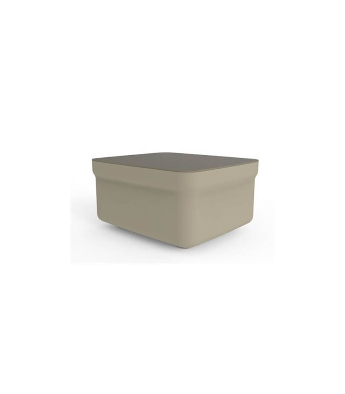 Mesa de centro Club de centro rectangular, en polietileno rotomoldeado, de 65 x 56 cm, protección UV. Uso interior y exterior. Sistema de drenaje de agua. Altura 34 cm. Colores blanco, arena, chocolate, verde oliva.