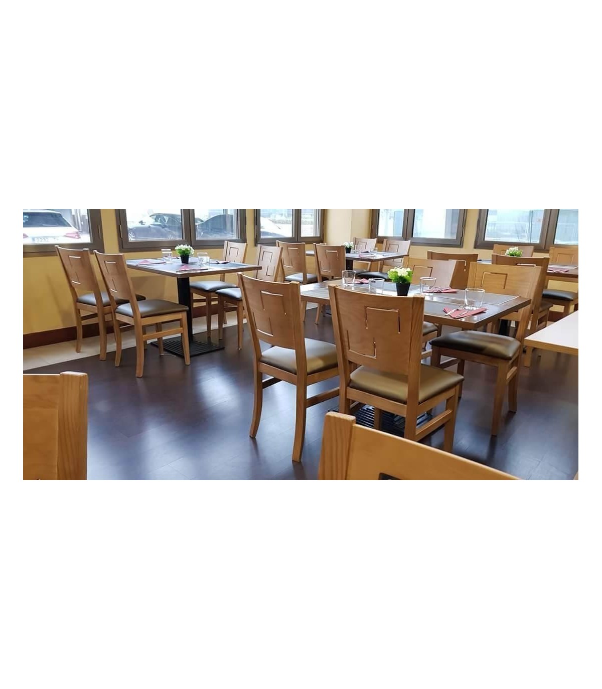 Silla Genova de madera de primera calidad, ideal para hostelería por su comodidad, precio y confort. Destaca la madera de pino con la que están fabricadas, cuentan con escuadras de refuerzo encoladas y atornilladas al esqueleto del asiento. Silla de gran calidad y durabilidad. Disponible en varios colores de madera y tapizados. Nuestra silla Genova ofrece una diversificación que le da un toque personal en tu local o comedor.