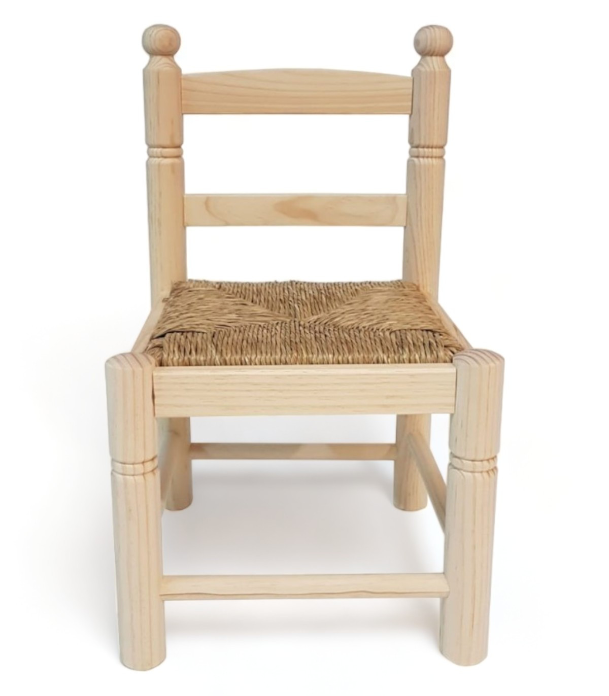 Silla de madera infantil de pino para niños hogar disponible con asiento de anea y tapizado de polipiel y tela desmontable. Diseño rustico pero a la vez elegante y acogedor. Práctica silla para niños hecho de madera artesanal. Es resistente a los golpes y de muy buena estabilidad. Respaldo curvado de reducidas dimensiones. Práctico silla para niños hecha de madera pino macizo.. Es resistente a los golpes y de muy buena estabilidad.