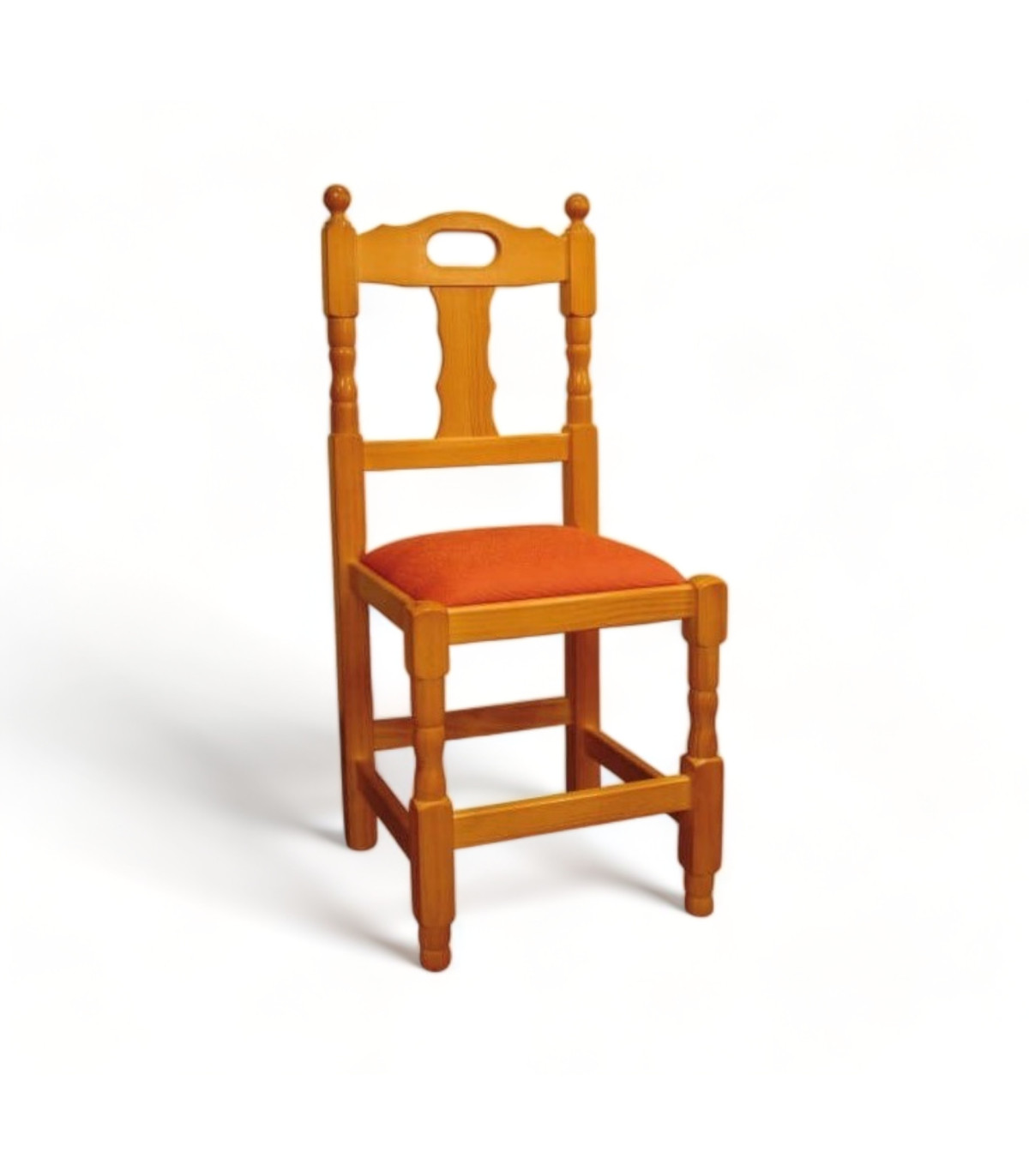 Silla Asa fabricada en madera pino de primera calidad, ideal para bares, restaurantes, mesones... Silla con escuadras de madera de refuerzo lo que la hace prácticamente irrompible. Disponible en varios colores de madera, también puedes elegir el tapizado de piel o tela o asiento de anea. Mobiliario de Hostelería.