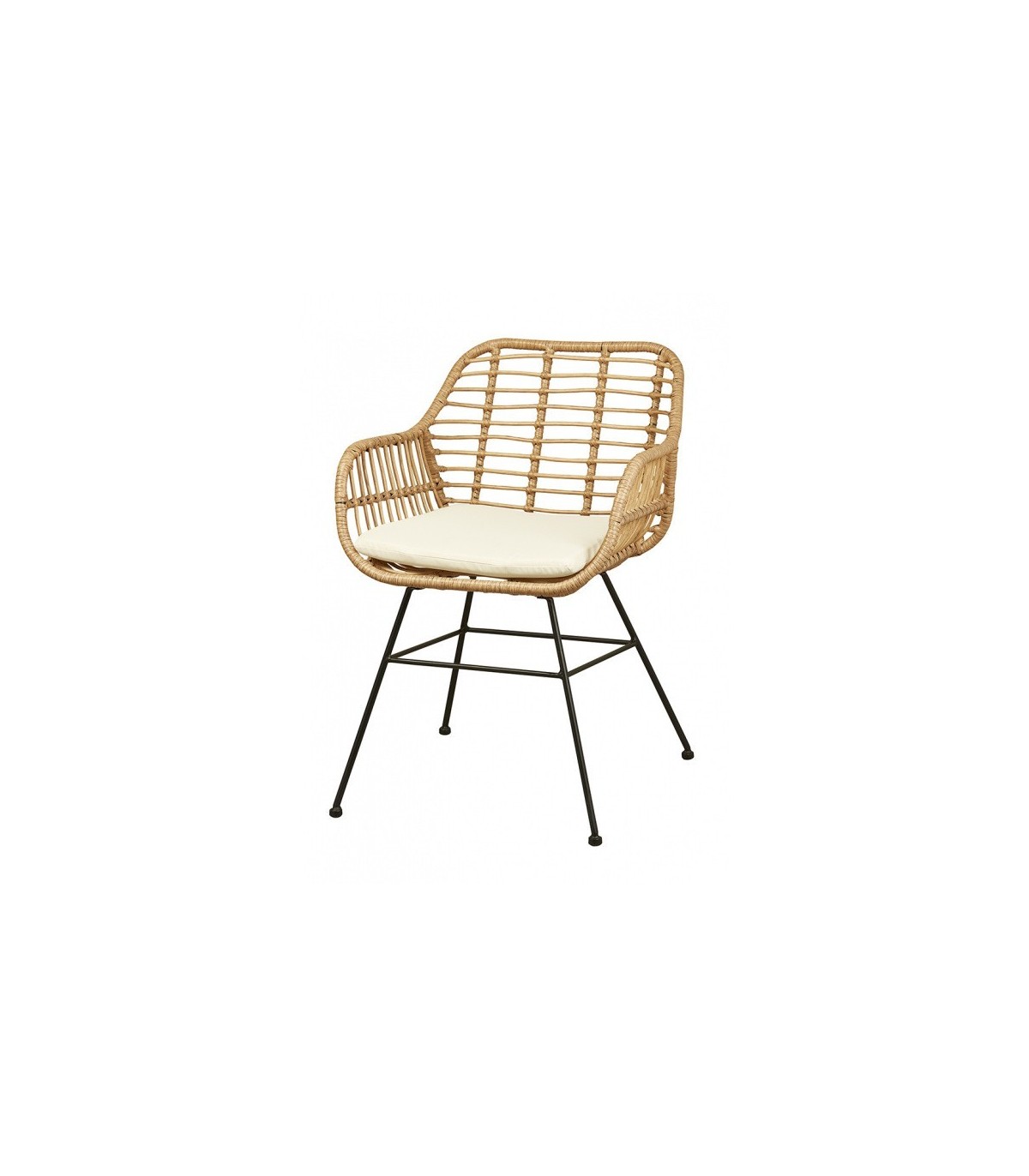 Silla Nivelles armazón acerado en color negro. Médula sintética 100% virgen, no reciclada y tejida a mano. Uso para interiores. Cojín no incluido 19.99 mas iva