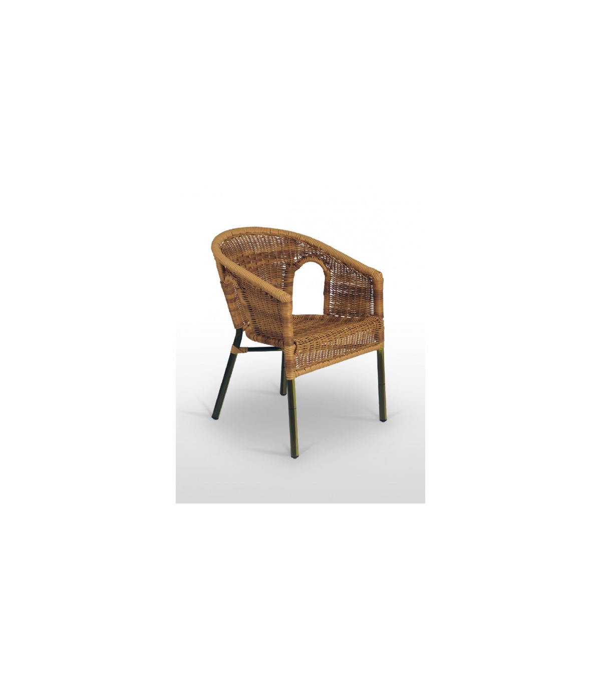 Sillón Halle con armazón de aluminio dark bambú tejido plastic 4 mm,  medula bicolor, apilable, especialmente para terrazas que quieran darle un toque bistro o parisino.