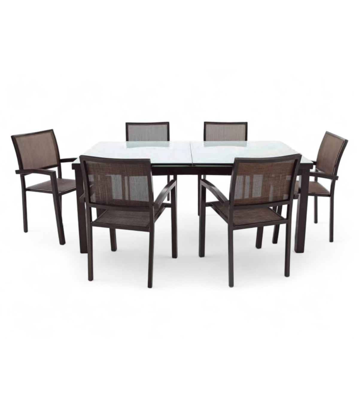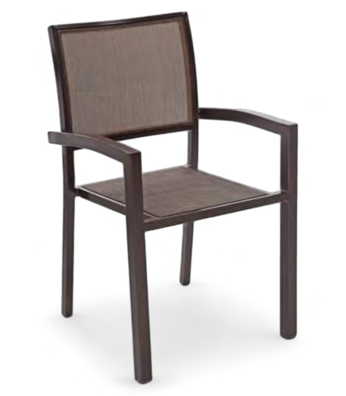 • Silla de exterior con estructura de aluminio lacado en color chocolate apilable