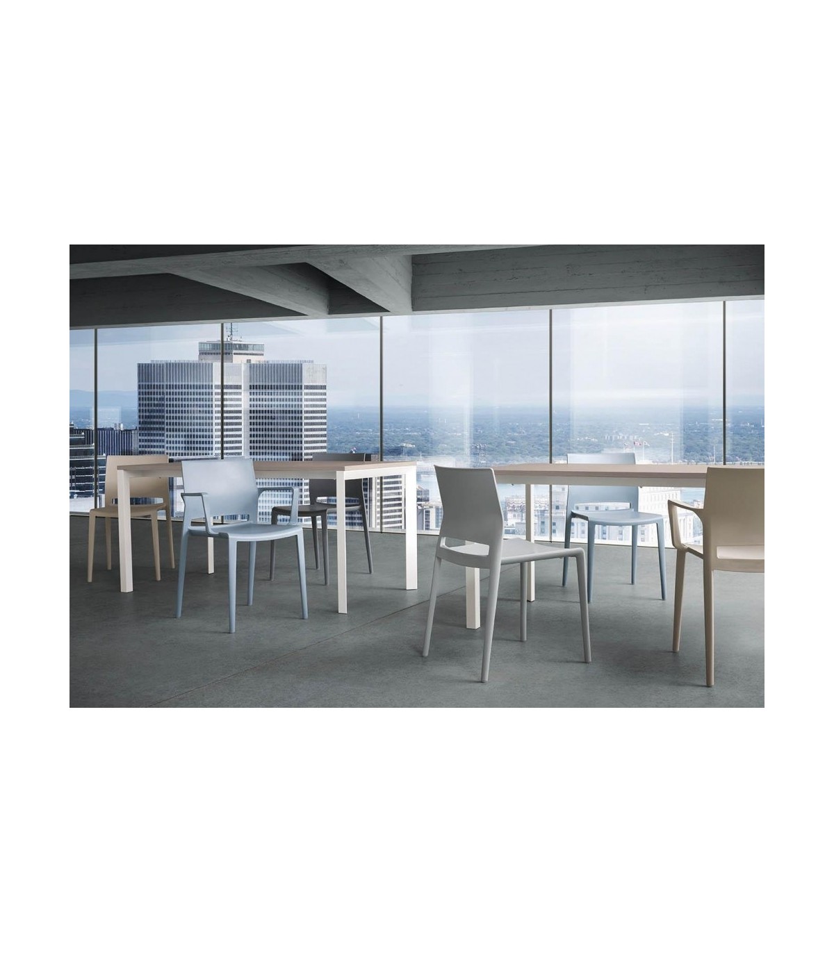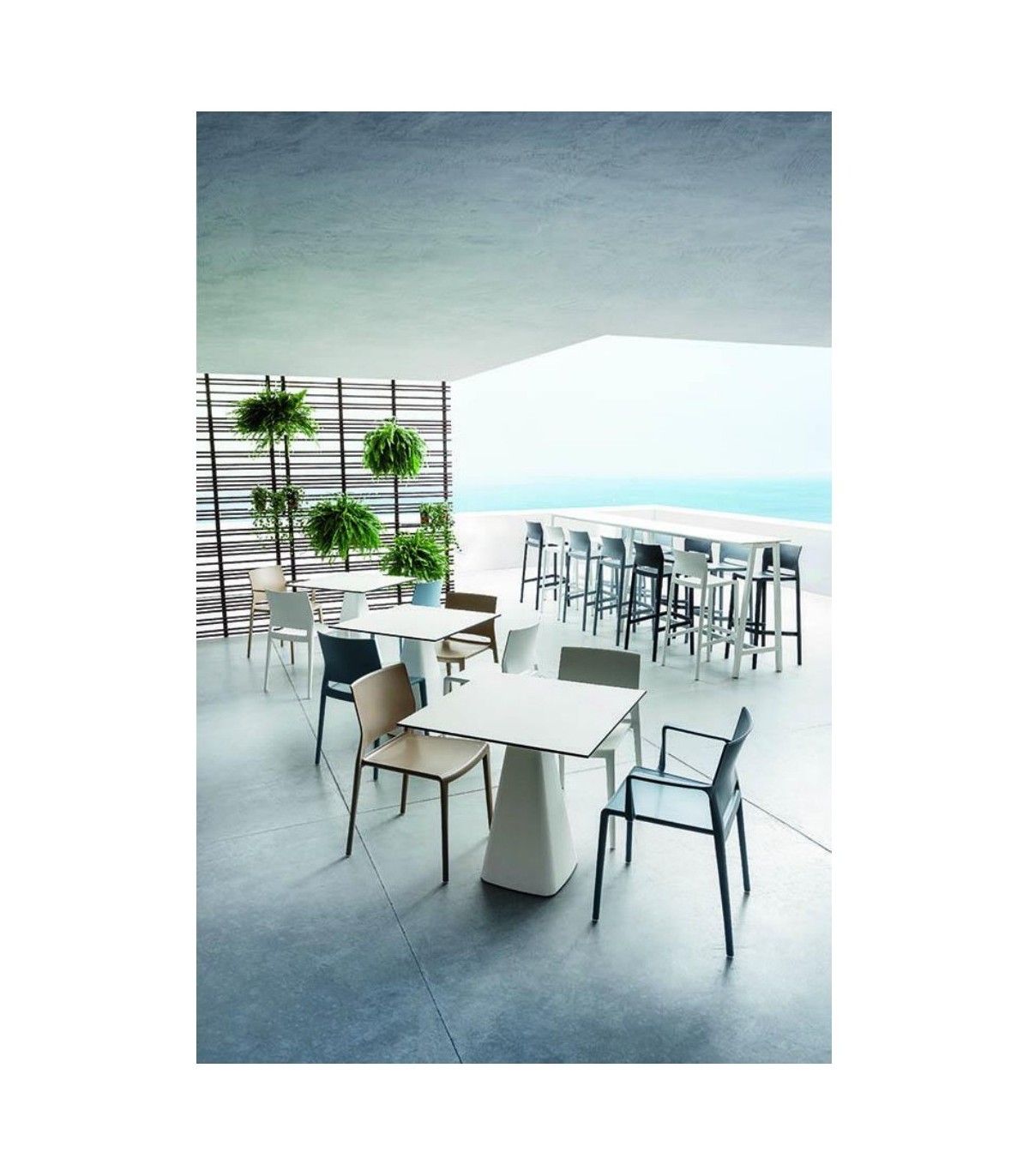 Silla Bakhita de hostelería realizada en tecnopolímero, pieza de gran comodidad y robustez. Producida mediante un proceso de inyección 2k ,lo que lo convierte en resistente y durable, utilizando una tecnología compleja con la se obtiene un resultado sencillo, calidad. Apta para interior y para exterior. Apilable.