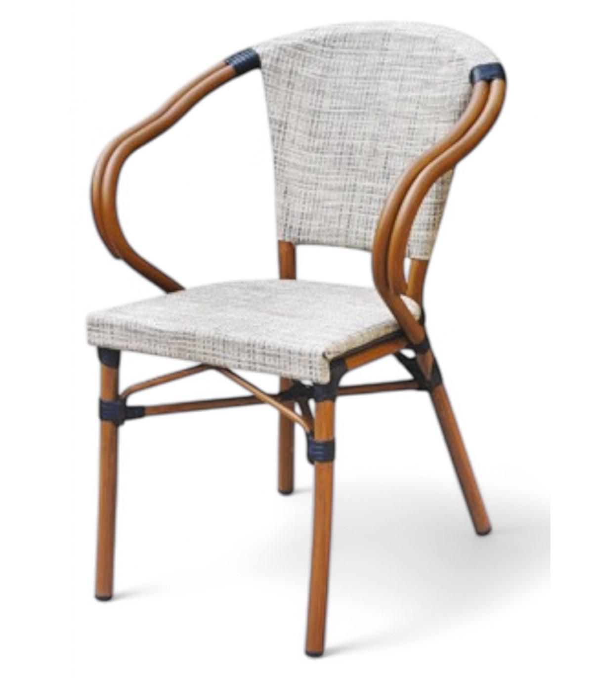 Los ambientes bistrot parisinos están de moda. Y cómo  mejor ejemplo el Sillón Rino se convirtió hace más de 5 décadas en una pieza imprescindible en todos los restaurantes y decoraciones vintage. Gran resistencia en el uso diario y su fácil limpieza las hacen best seller. Ideal para restaurantes, hoteles, cafeterías, restaurantes. Apilable. Sólida estructura fabricada en aluminio color bambú y su trenzado de alta calidad y resistencia, le hace muy ligera. Garantía en todos nuestros productos durante 2 años contra cualquier defecto de fabricación.
