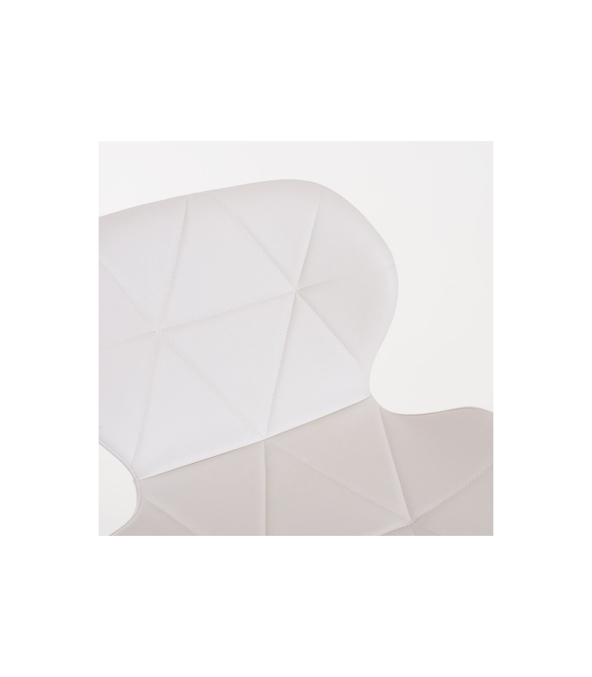 Taburete diseño Prisme moderno con respaldo acolchado y ergonómico en su asiento de piel sintética  y con el pie con un precioso acero cromado que le da un aire muy vanguardista. El asiento consta de un mecanismo giratorio y también regulador en su altura. Colores: Blanco, rojo, negro y gris.