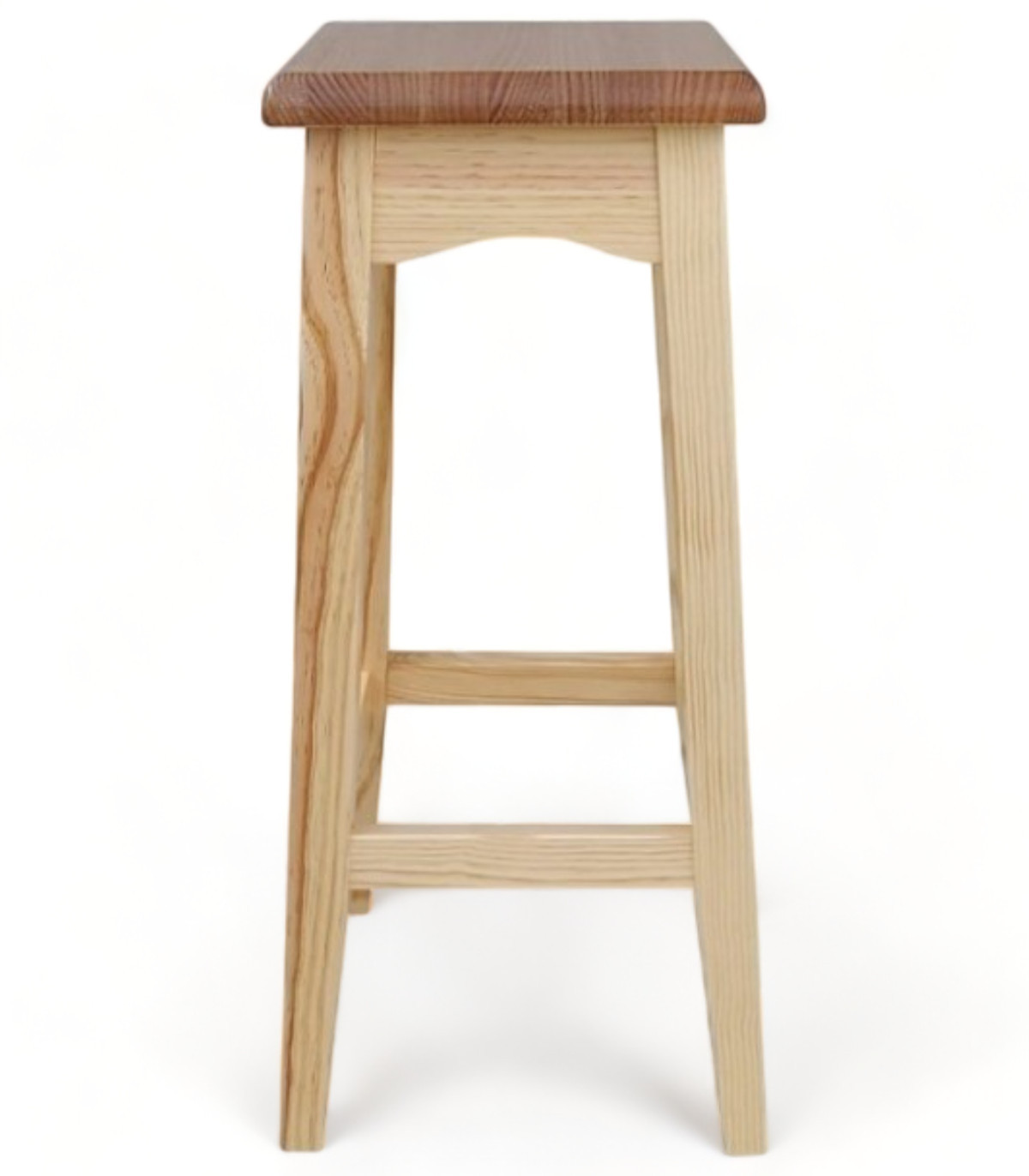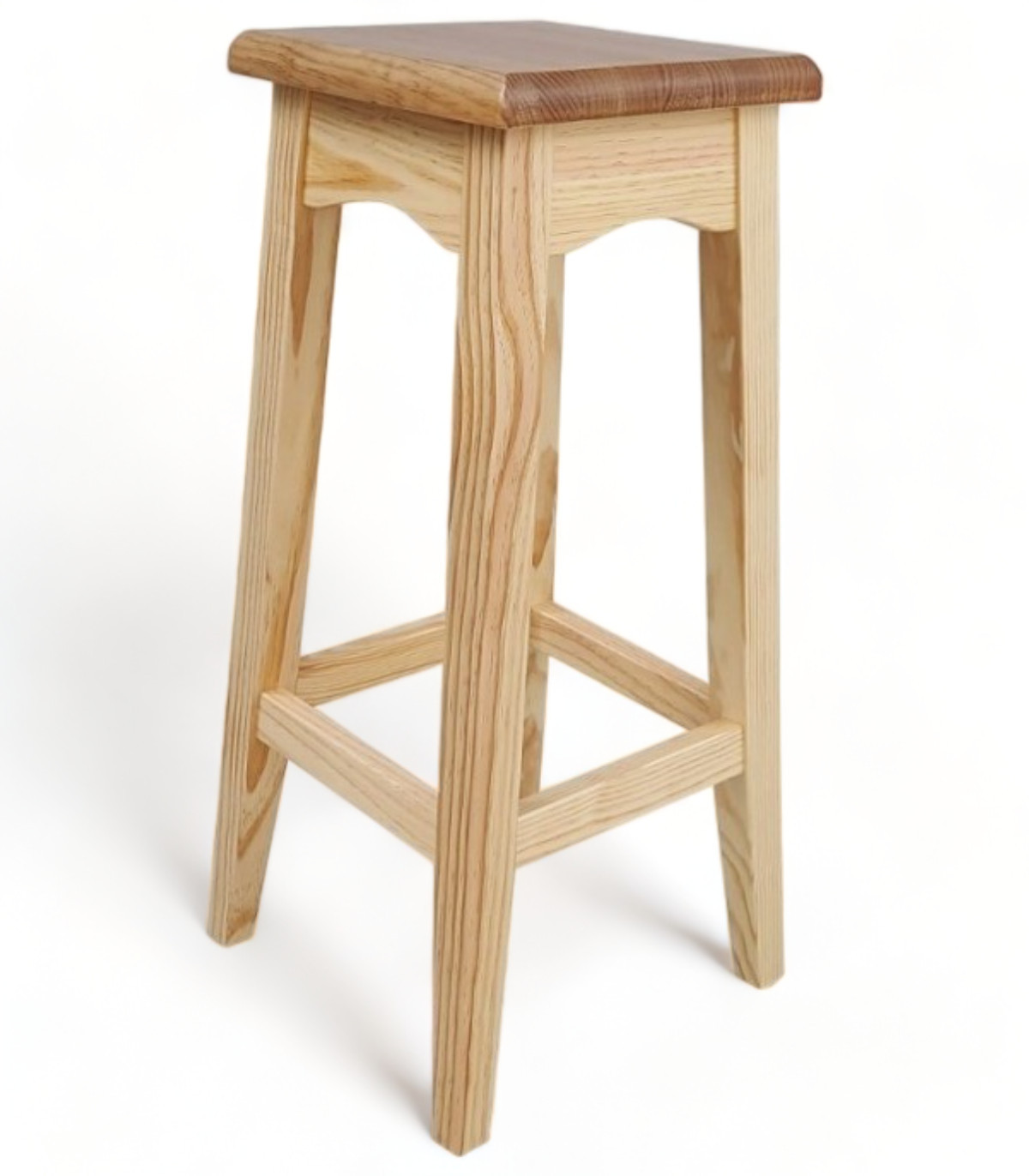 El taburete Rueda es fácil de barnizar dado que la madera de pino que coge muy bien los colores, y es mas económico que otras maderas similares como el haya y el roble.