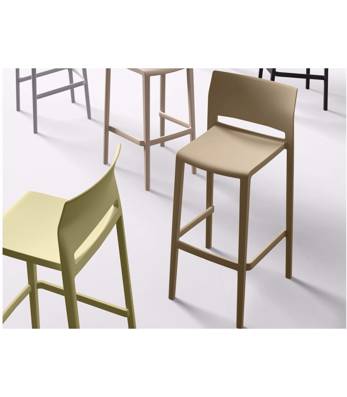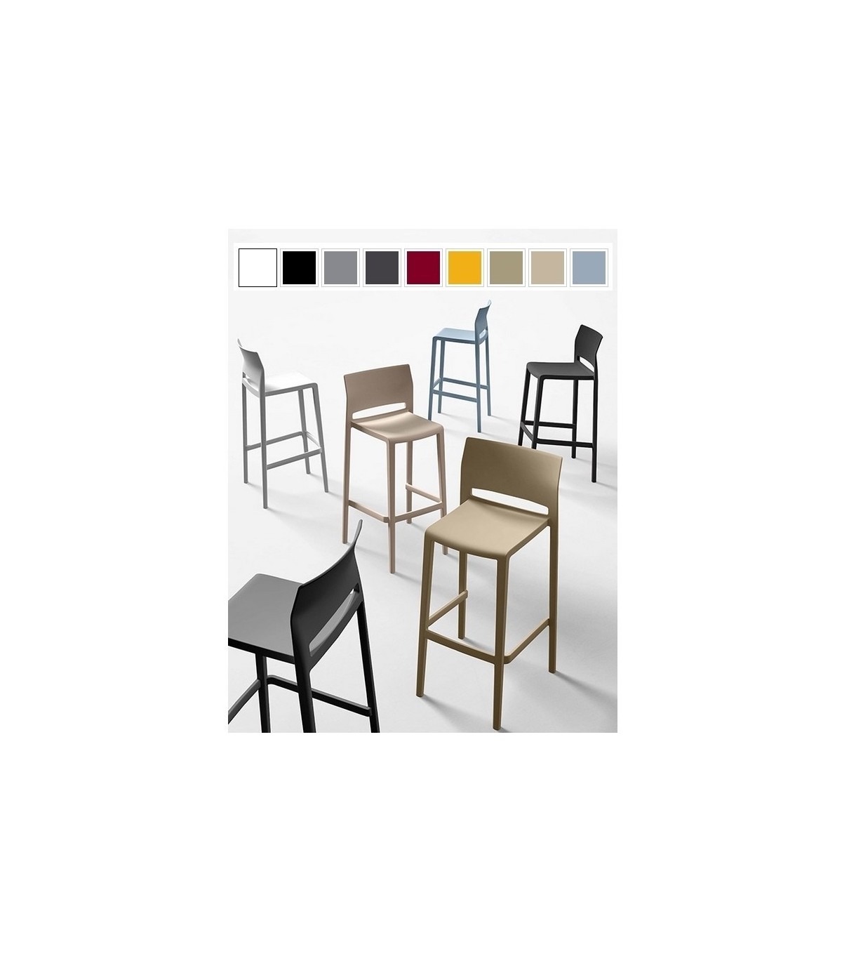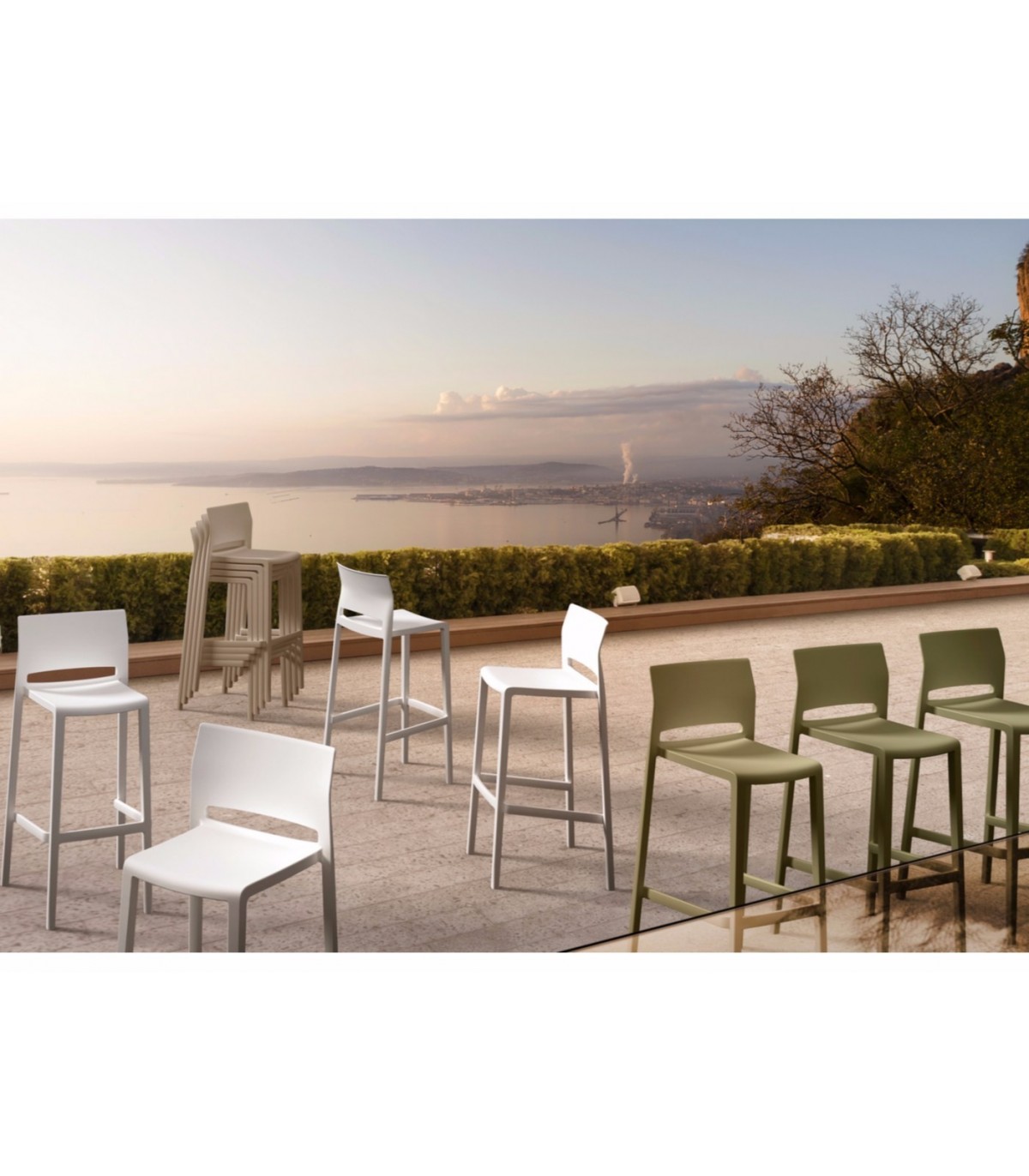 Taburete Bakhita de hosteleria, válido tanto para interior como para exterior., se adapta perfectamente a un estilo joven y moderno, por lo tanto, también a la formalidad de los entornos más exigentes, gracias a su peso ligero y sencillo de apilamiento resulta ser extremadamente multifuncional. Los materiales y sistemas de construcción hacen que sea robusto e inalterable,  apto uso en exteriores