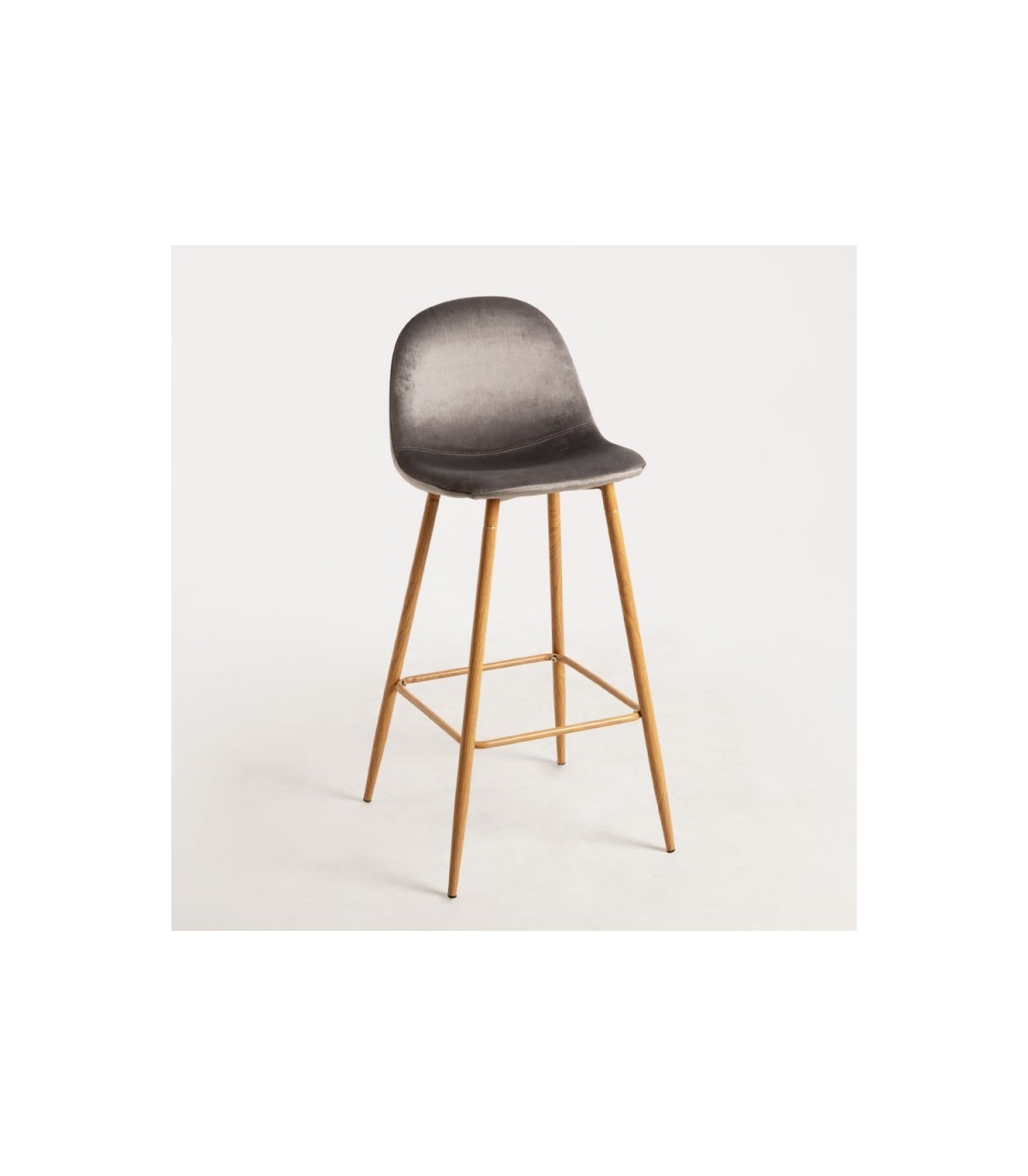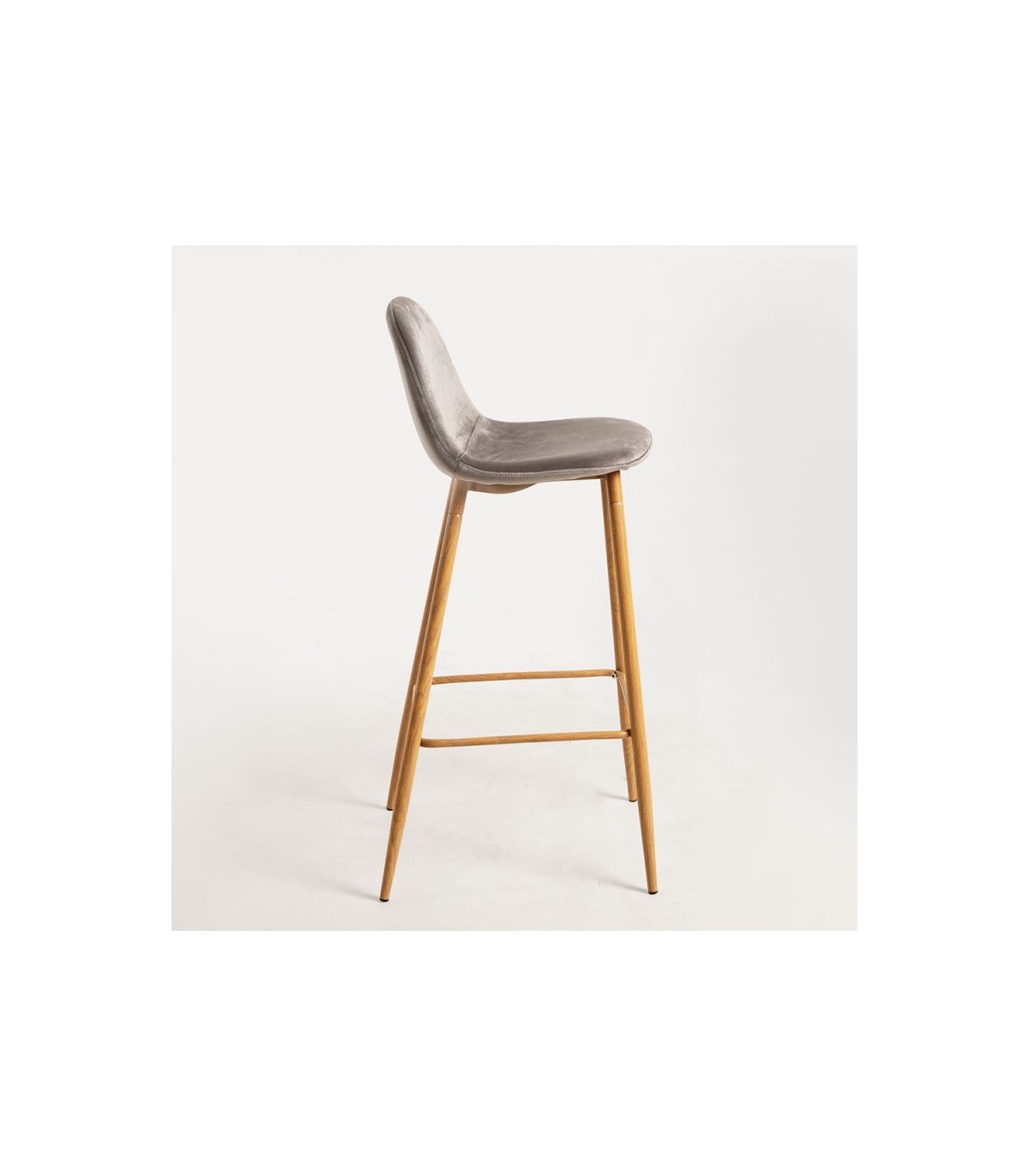 Taburete Boro terciopelo patas de metal imitación madera y tapizado en diferentes colores. Colores disponibles gris y beige.