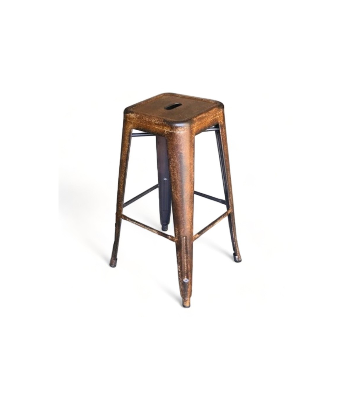 Taburete Tolix vintage Rusty de acero lacada en color efecto oxidado. Imprescindible para decorar y para el uso diario de negocios de restauración u hogares con personalidad propia. Se acopla a distintos estilos de decoración, cafeterías modernas,industrial, vintage. Hay taburetes altos, bajos y mesas a juego.