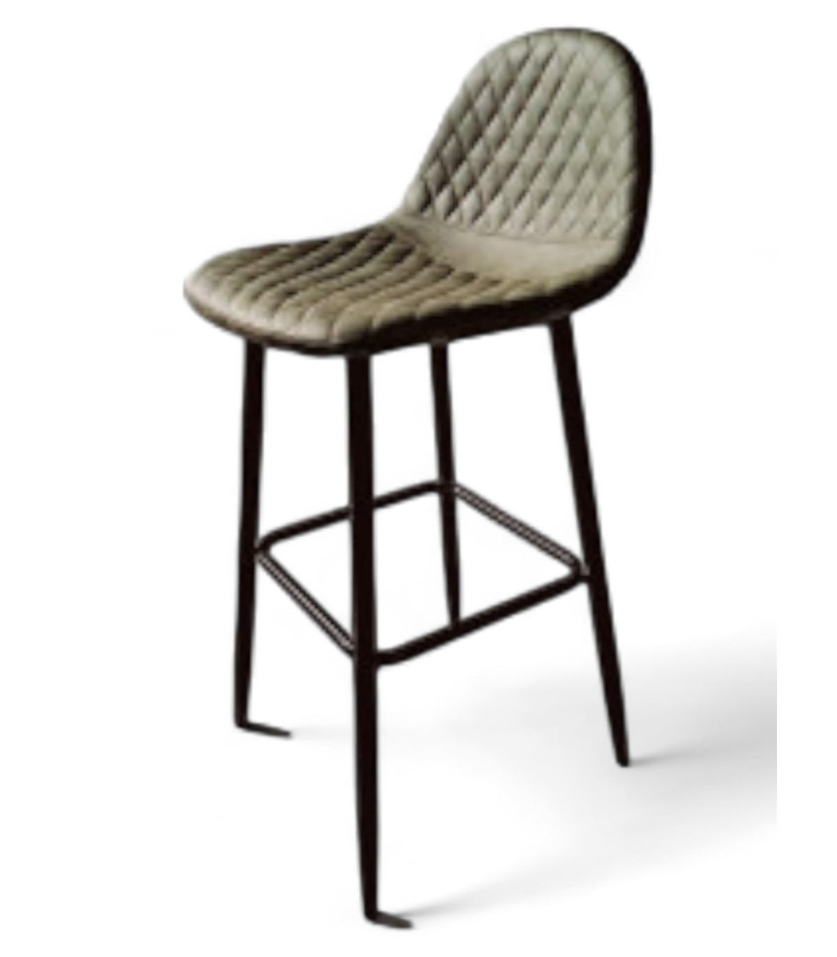 Taburete Boro negro polipiel verde musgo patas de metal lacadas negro epoxi. El respaldo tapizado del  taburete con dibujos en rombos se adapta a la perfección al cuerpo por lo que, junto con su interior acolchado, tiene un diseño depurado, típico de los muebles nórdicos, especial bares y restaurantes. Velvet